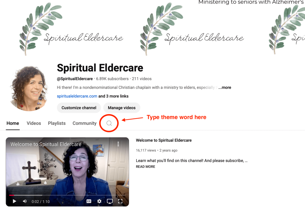 Subscribe to my blog (blue button at right) to get a weekly link to the service (plus a link to the written agenda). Or you can always go directly to YouTube and type the title into my YouTube search as shown here: